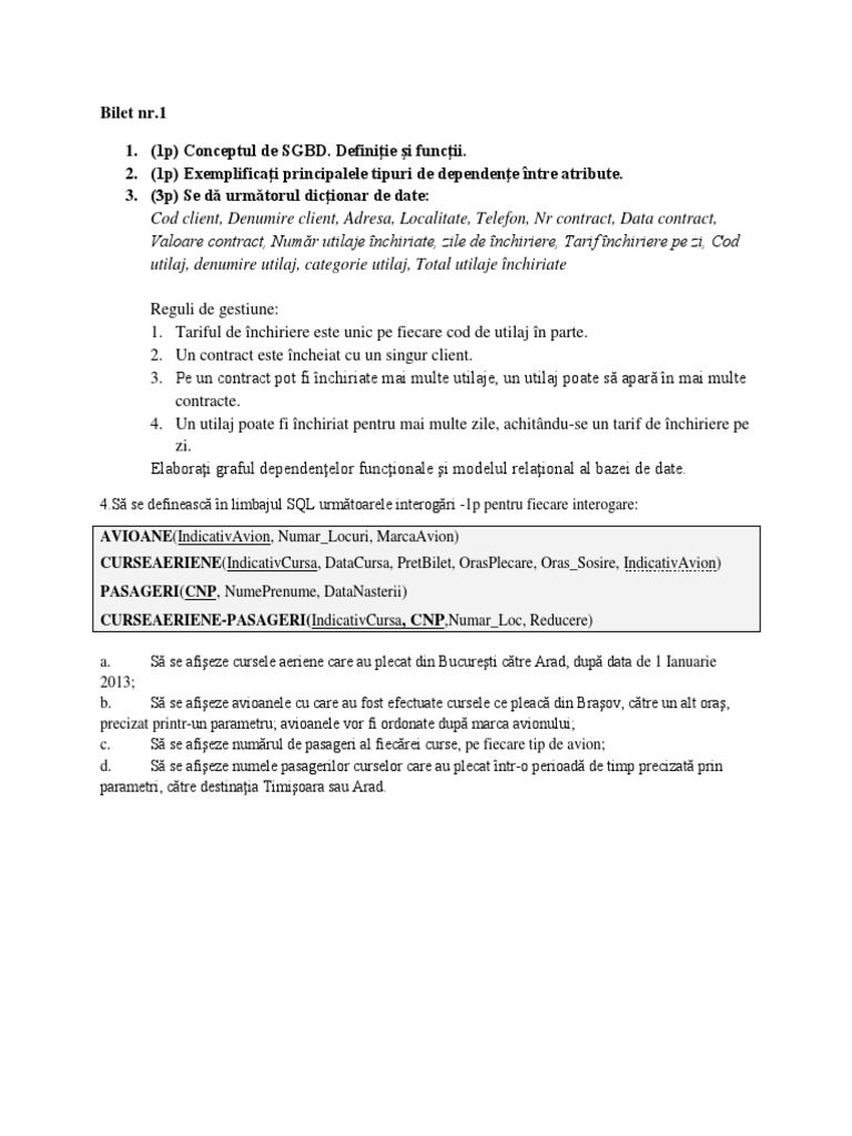 Bilet Examen Baze De Date Ase