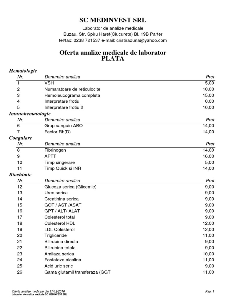 Lista De Preturi Synevo Romania Aspergillus Immunology