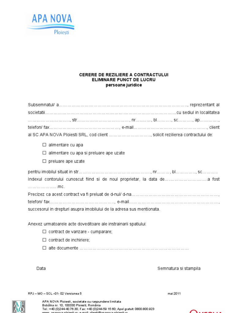 Cerere Reziliere Contract Persoane Juridice