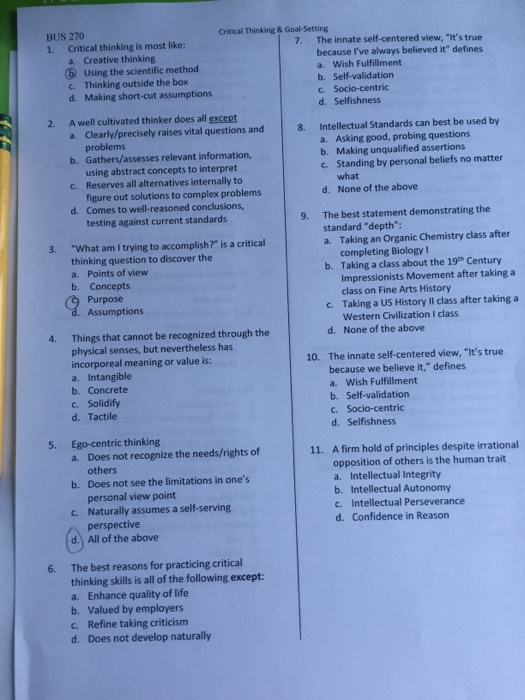 Solved Critical Thinking Is Most Like Creative Thinking Chegg Com
